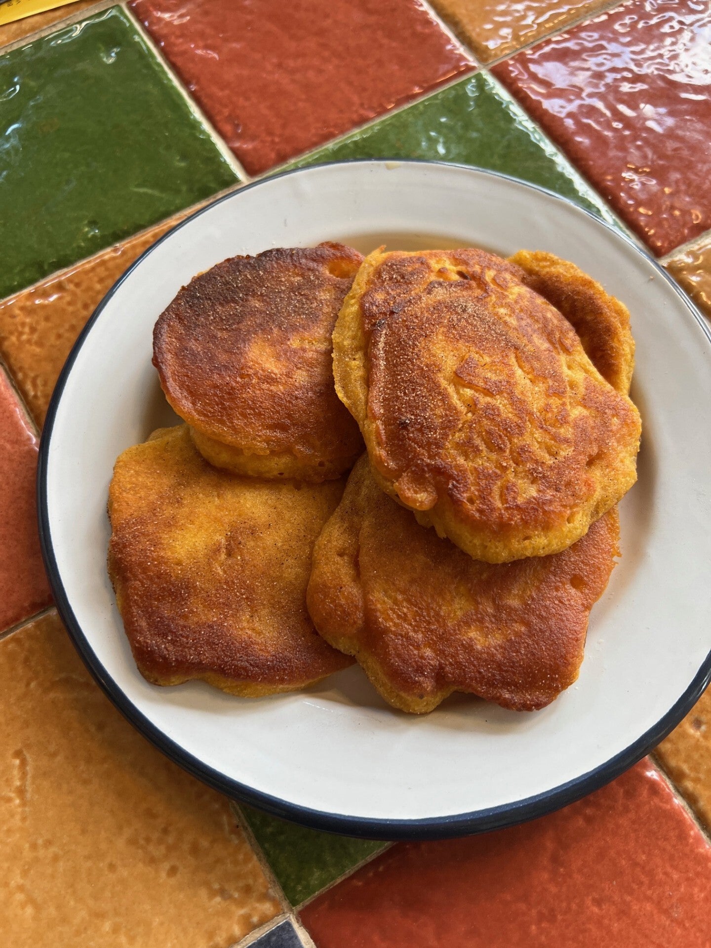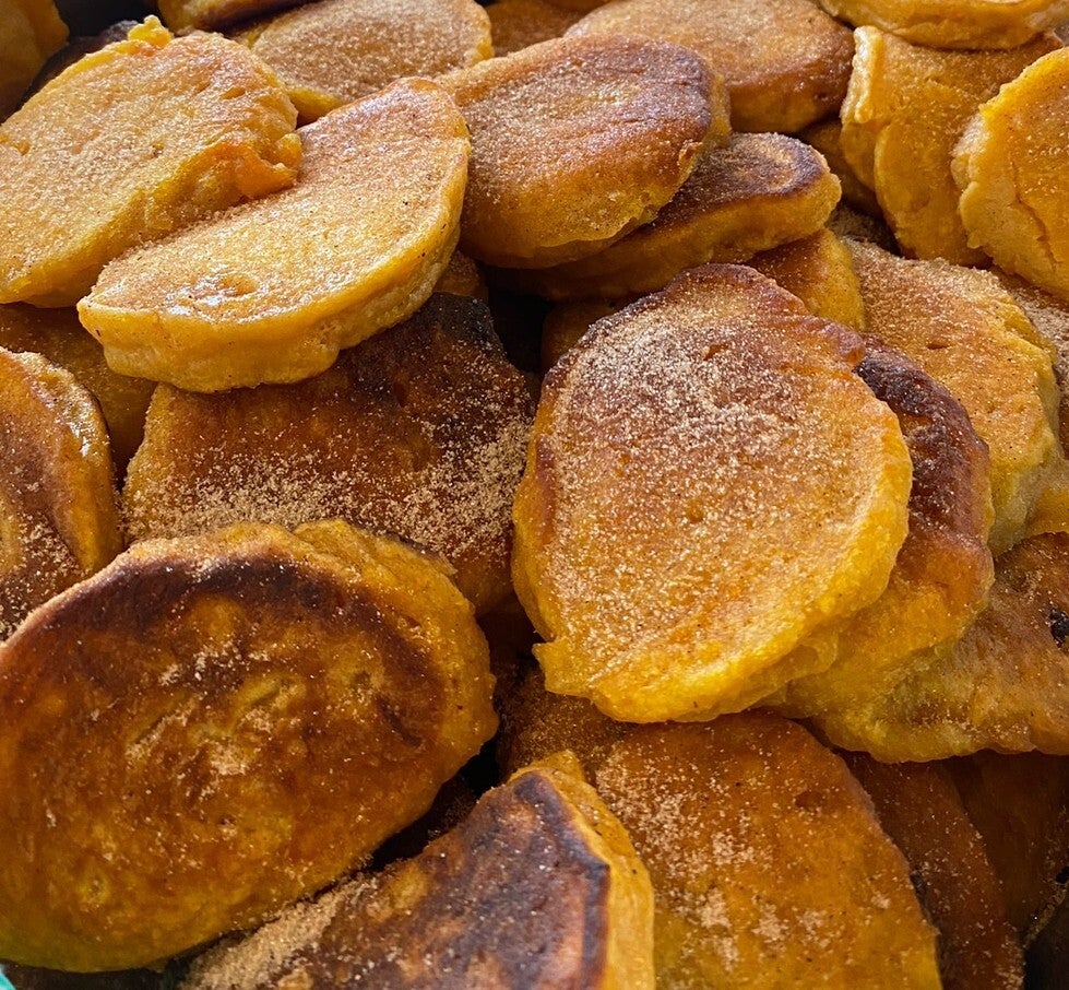 Pack of 6 delicious Pumpkin Fritters. Fried and frozen so you can defrost, heat and eat.